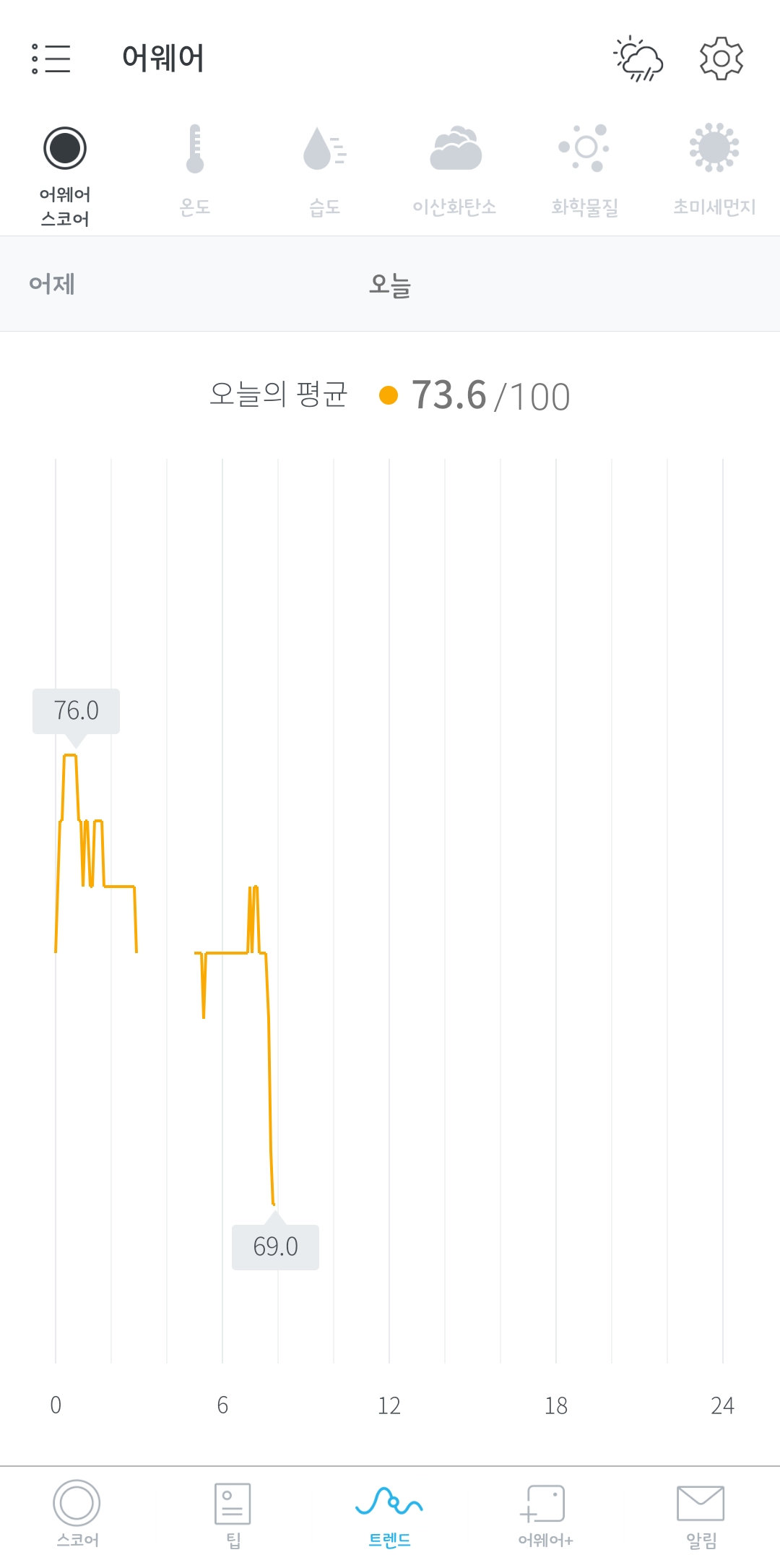 다음은 가장 많이 보게될 트랜드탭... 여기는 상단에 보면 어웨어에서 측정가능한 항목들이 나열되어있는데 각자 항목별로 변화추이를 확인할수있는 화면으로 구성되어있고..