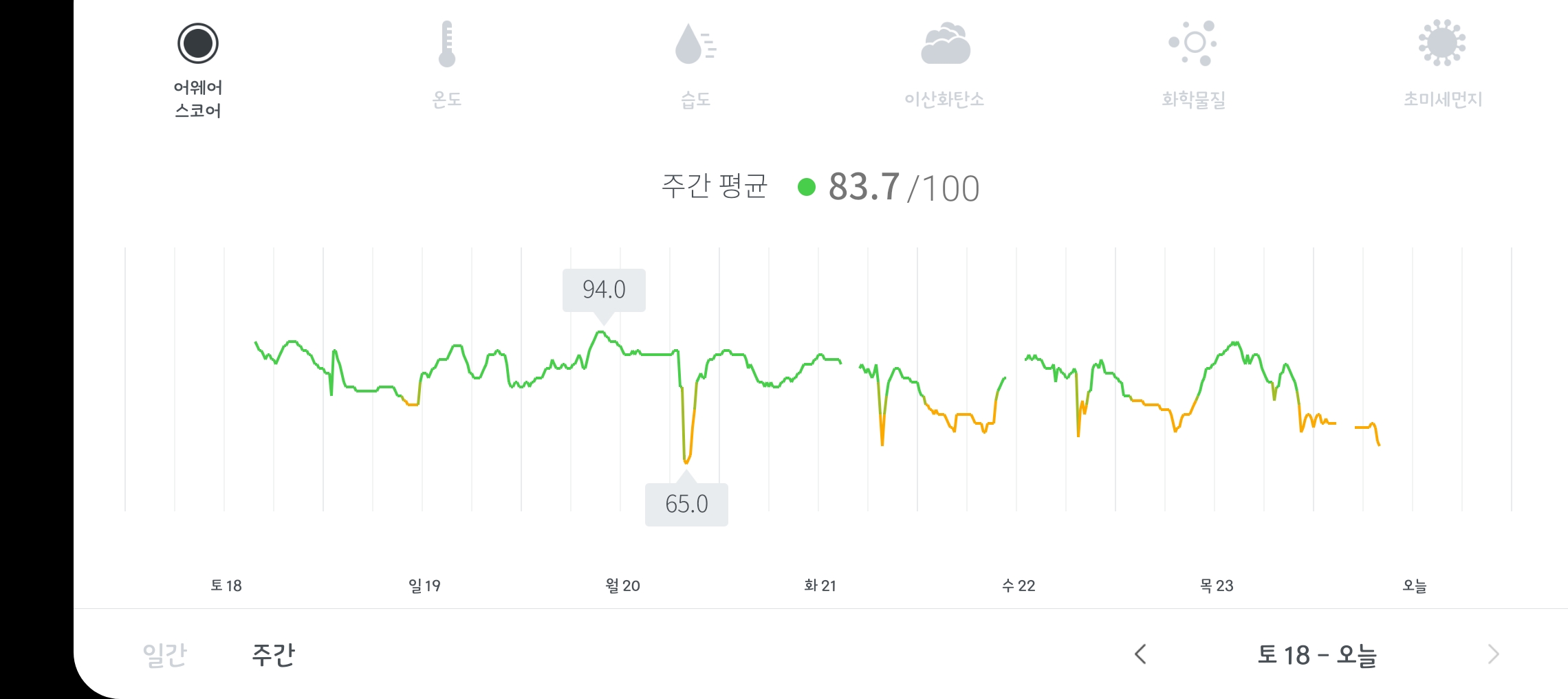 이렇게 일간과 주간 내역을 한눈에 볼수있도록 구성이 되어있음